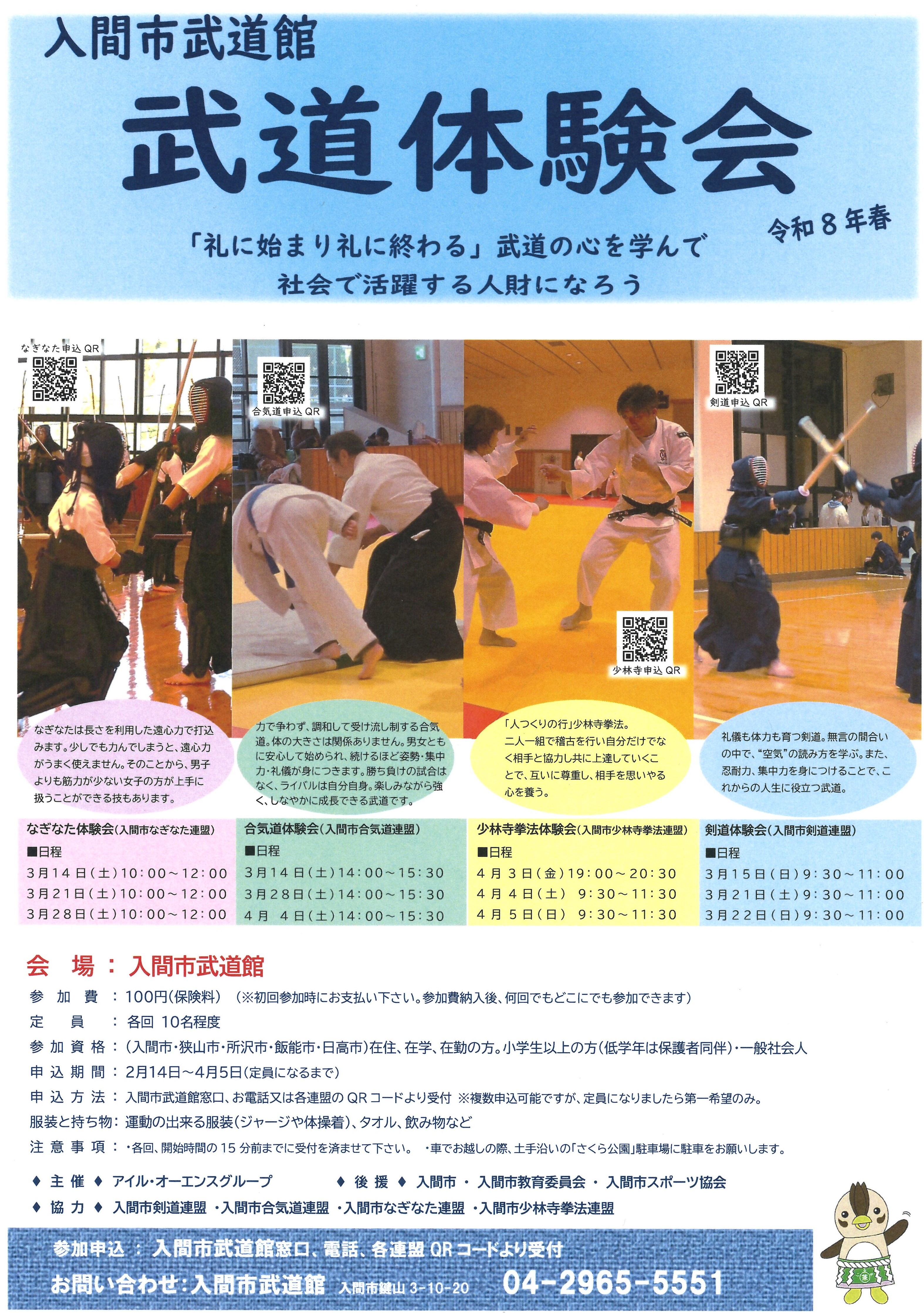 | 問合せ | 入間市武道館 電話:04-2965-5551 |